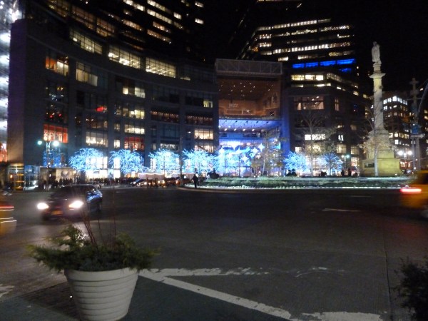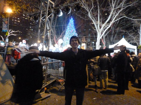 When I got back, I started celebrating right away – I guess I didn’t want to wait a minute! I grabbed a friend of mine, Michelle, and headed to Columbus Circle for the Winter’s Eve celebration! The trees were lit up around the Circle and in front of the Times Warner building. There were tents set up by holiday shops and high-end restaurants selling holiday novelties and cheap eats. It was crowded with people radiating their own form of holiday spirit. Michelle and I walked into the mall, and walked up Broadway towards Lincoln Center and Lincoln Square. Lincoln Square was where there were more tents set up and they had holiday music playing around a decorated Christmas tree in the middle of the Square. It was beautiful and it was a great start to the season!