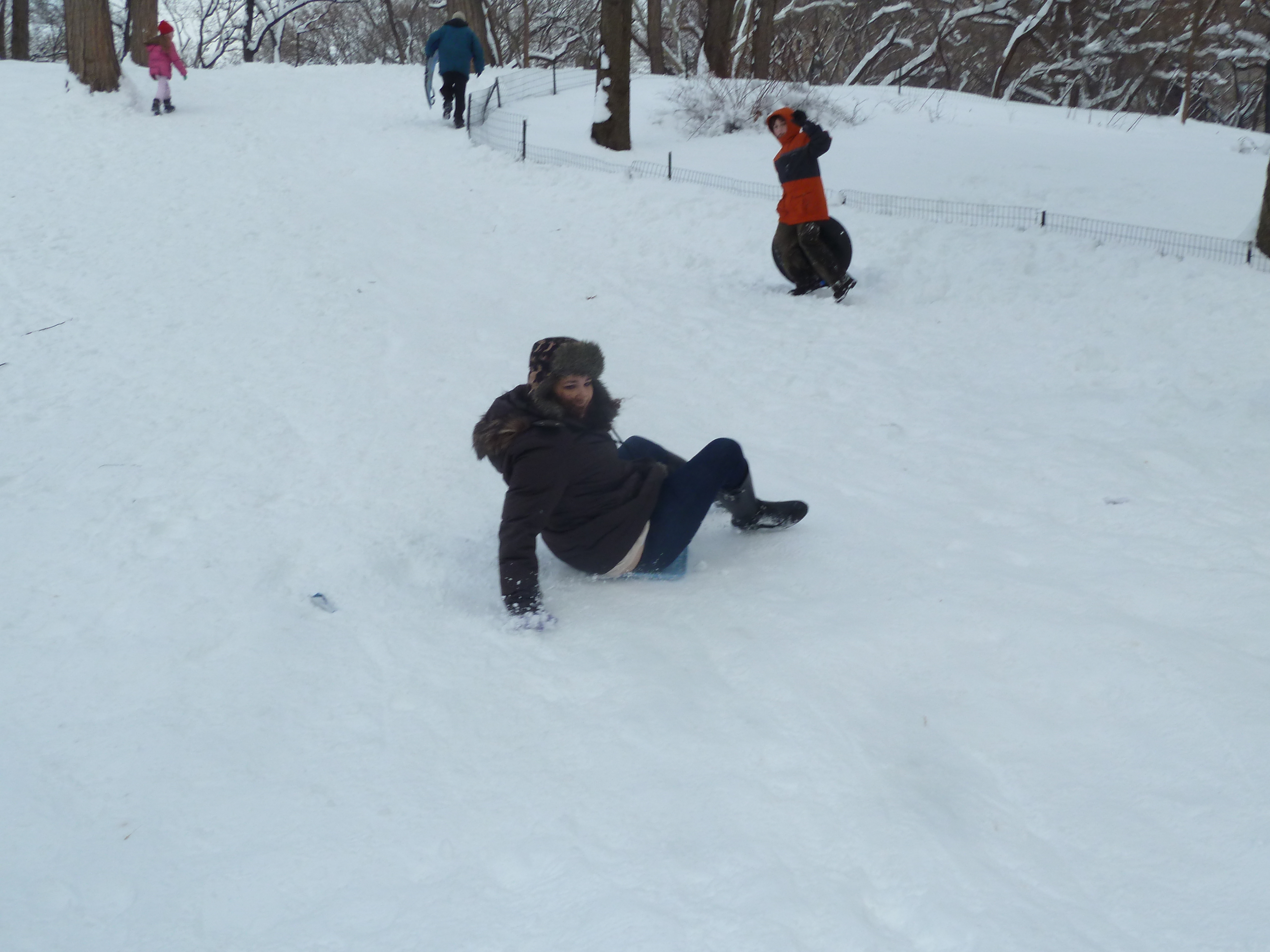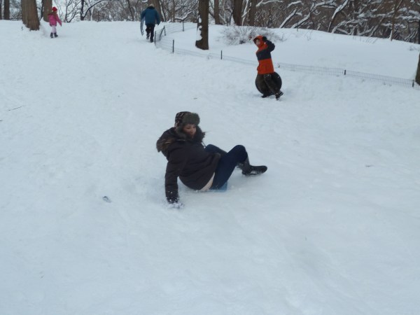 Later in the week, we also went sledding in Central Park! Sam and I (ahem, excuse us) stole trays from the cafeteria and used them as sleds on this crazy fast hill on the Central Park corner closest to The Plaza. It was crowded but we got some sledding down. Some people there let us use our sleds and we left the cafeteria trays there as donations to those who don’t have sleds but want to!