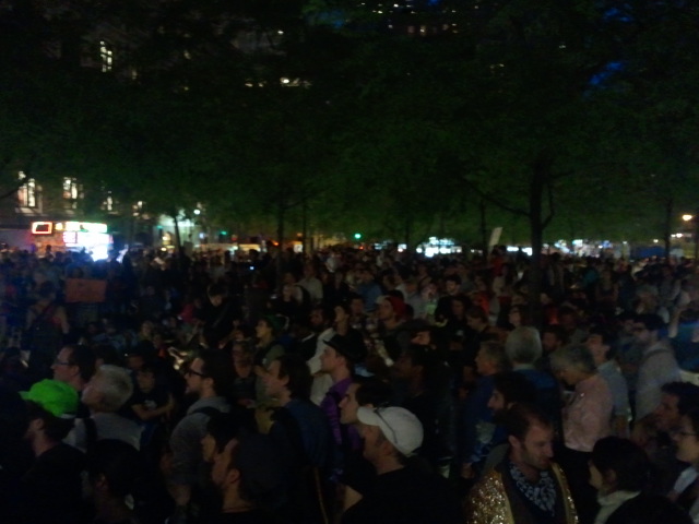 Night fell on Zuccotti as OWS participants met for a spokes council