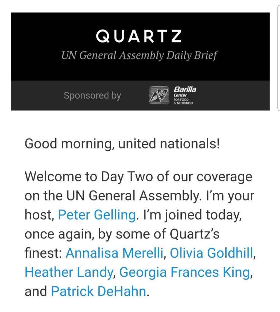 As a news curator at Quartz, I wrote short article summaries about anything related to the global economy, so I touched upon numerous topics and events for readers. The same work went for the flagship Daily Brief that was sent to half a million subscribers, as well as special edition newsletters on Covid and the UN General Assembly.